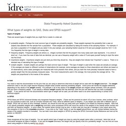Using weights in Stata Yannick Dupraz September 18, 2013 Stataoffers4weightingoptions: frequencyweights(fweight), analyticweights (aweight),probabilityweights(pweight)andimportanceweights(iweight). ... Read More